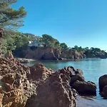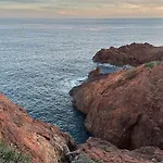 Set 3.4 km from Amphitheatre romain de Frejus, the 30 m^2 Charmant Studio Lumineux Avec Parking Prive comprises a balcony and a sitting area overlooking the garden.